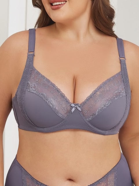 Plus-Size Lace Solid Color Underwire Bra – Side-Smoothing Support & Sexy Gathered Shape
